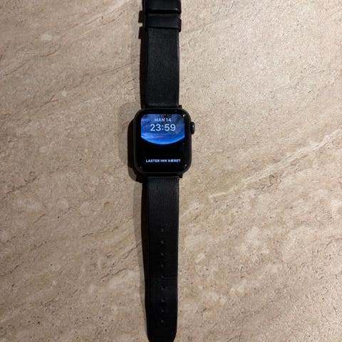 Apple Watch klokke. Smartklokke fra Apple med integrasjon mot iPhone og andre Apple-enheter. Egnet til varsler, aktivitetsmåling og bruk av apper direkte på håndleddet.
