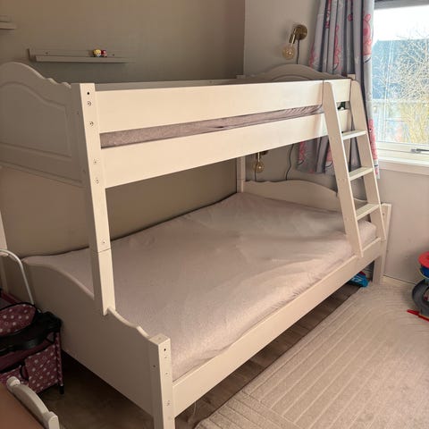 Høyde til sengebunn: 155cm. Total høyde: 190 cm.