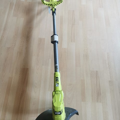 Ryobi gresstrimmer med justerbart håndtak og beskyttelsesskjerm. Medfølger flere ekstra trimmerspoler/trimmehoder, som vist på bildet. Egnet til kantklipping og vedlikehold av plen og mindre grøntarealer rundt hus og hage.