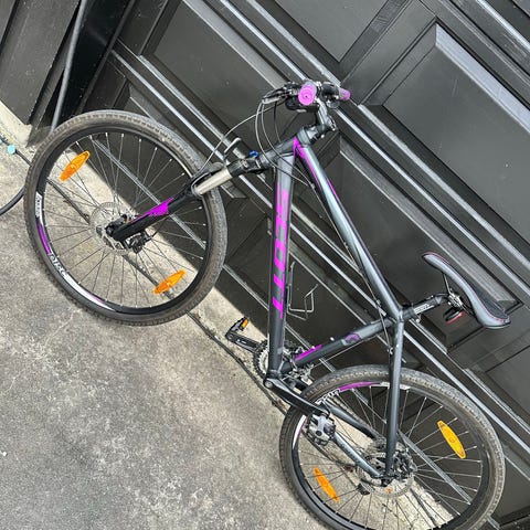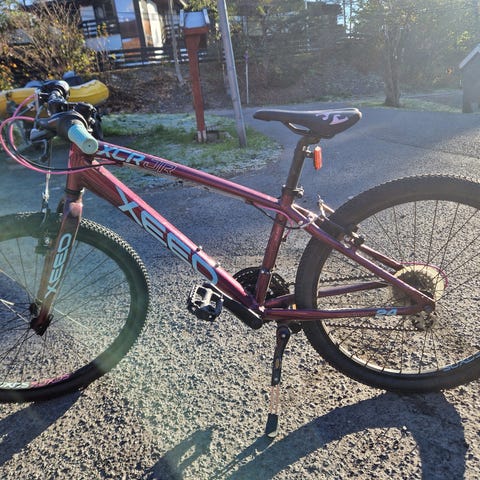 Kjøpt ny for 3 år siden. Synlige bruktsmerker på spesielt håndtak og ramme. Har ringeklokke, refleks forran og bak.