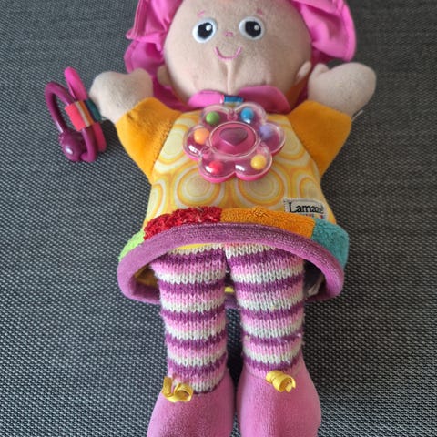 Søt bamse/dukke med lyd (snakker når man klemmer på den). Det forekommer bruksmerker/flekker.