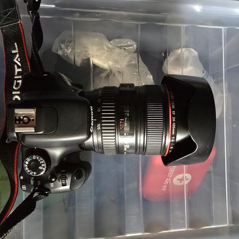Kameraet har innebygd blits, programhjul på toppen for ulike opptaksmoduser og bakre skjerm for visning av bilder og menyer. Det følger med skulderreim med EOS-logo, og lader til batteri. I tillegg medfølger en kompakt kameraveske med skulderreim og frontlomme for oppbevaring av kamera og tilbehør.