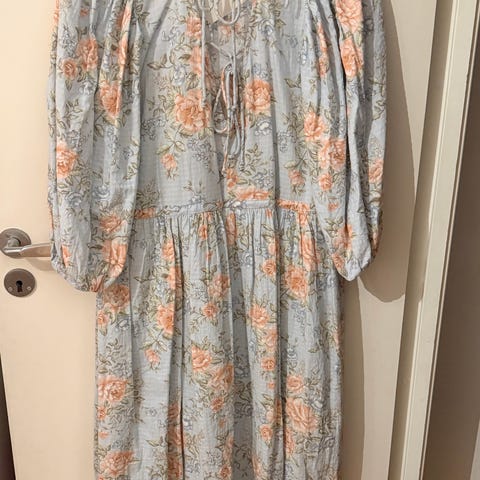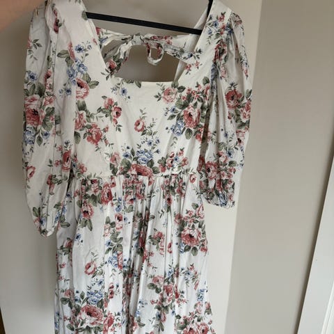 Nydelig blomstermønstret kjole fra Newbie Woman / Dame. Fleksibelt ryggparti, lommer og sløyfe som kan knytes eller gjemmes I armene.