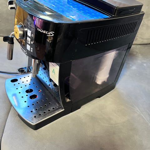 Kaffemaskin som kverner kaffebønner. Den er godt brukt, men fungerer akkurat som den skal.