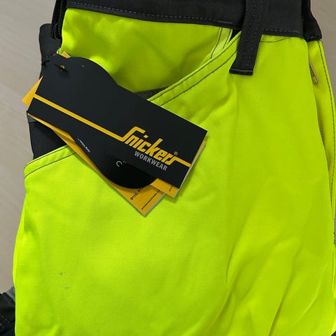 Snickers Workwear arbeidsbukse i svart med gule kontrastdetaljer. Buksen har forsterkede knær med plass til kneputer, flere praktiske lommer foran og på sidene, samt glidelåser langs bena. Egnet som arbeidsbukse for håndverk og annet arbeid der det er behov for slitesterkt tøy med god bevegelsesfrihet og oppbevaringsmuligheter.
