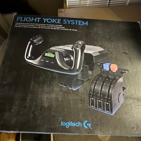 Logitech Flight Yoke System flysimulator-ratt med tilhørende throttle quadrant.