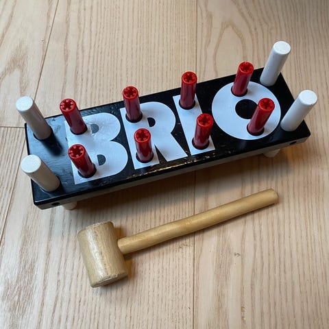 BRIO hammer og bankebrett som har vært lekt med mye.