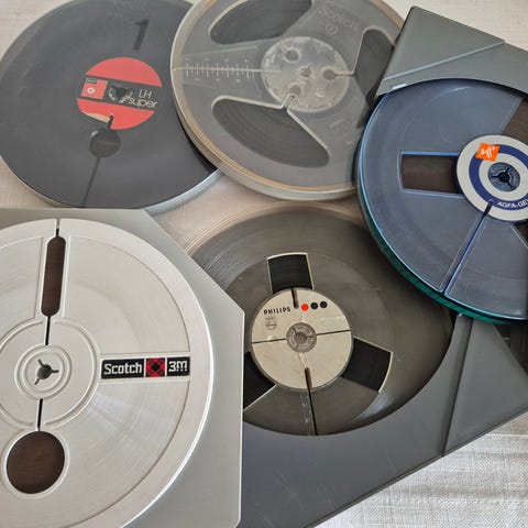 Esker og spoler er i bra stand, noe er innspilte, ikke noe garanti for bånd.