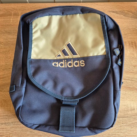 Sekken har crossover justerbar skulderrem. Ser ny ut! Den er ganske liten, og vil fungere best som en veske/bag.