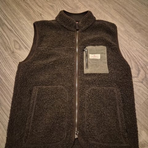 Peak Performance fleecevest for herre i størrelse M. Vesten er brun og laget i myk fleece. Den har hel glidelås i front og høy krage. På brystet er det en kontrastlomme med glidelås for oppbevaring av småting. Vesten egner seg som mellomlag under jakke eller som ytterplagg på mildere dager. Original pris 1.300 kr