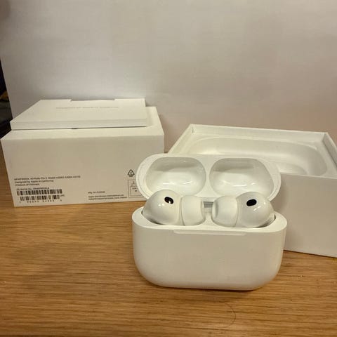 Selger helt nye AirPods Pro Gen 3. Kun prøvd 1 gang i 2 min, men siden eska er åpna får vi ikke returnert i butikk. Kjøpt 14. mars 2026 på Elkjøp.