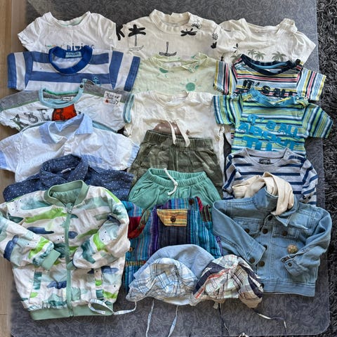 Stor pakke med t-skjorter, skjorter og shorts. Passer til 6-7 år. Noen er 128 cm men små i størrelse. Kjøpt fra PoP, KappAhl, Adidas, Lindex, WeTweens, Meiquita, m.m.