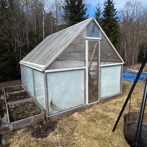 Drivhus treverk og plastplater gis bort mot henting