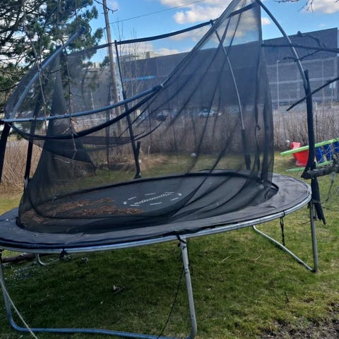 4.57m oval trampoline 2 år gammel