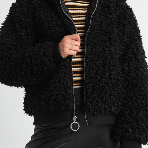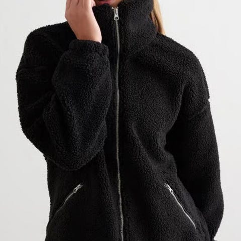Lite brukt, kort sherpajakke med hette. Veldig varm og stor i str. Lite brukt.