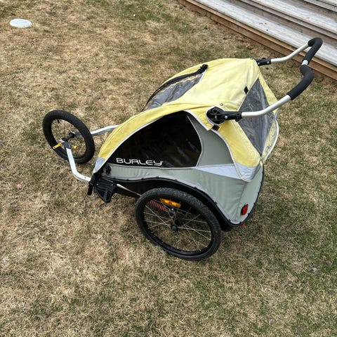 Ikke brukt på sykkel bare som trillevogn til og fra barnehagen.