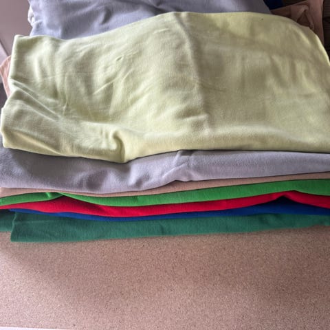 Ulike stoffer i jersey og ribb som hører sammen. Blir et eller flere sett med nydelige barneklær!