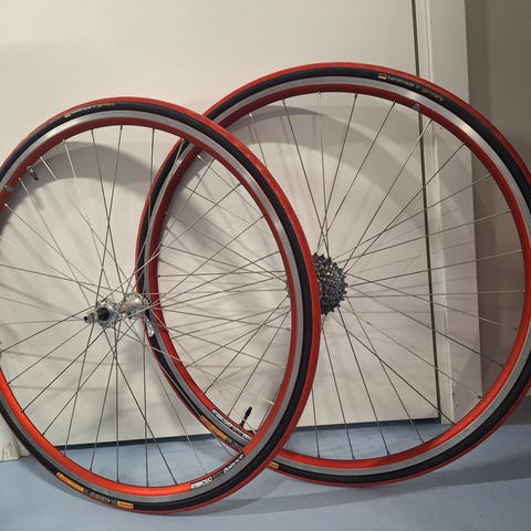Hjulsettet består av forhjul og bakhjul for landeveissykkel. Felgene er beregnet for 700c-dekk. Bakhjulet er utstyrt med 10delt kasett for gir og har flere eiker enn forhjulet.