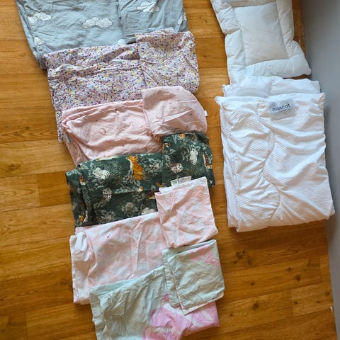 Dyndyne 80x100, pute og 2 sengesett