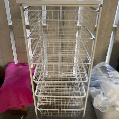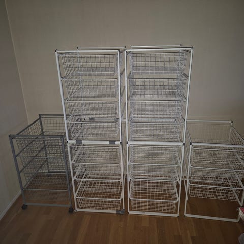 10 trådkurver i grå selges. Brukt, men fungerer fortsatt og uten tydelige bruksmerker.