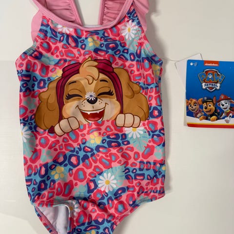 Ubrukt badetøy med Minnie motiv. Str 86, men virker som den er litt liten i størrelsen. Ny og ikke prøvd på.