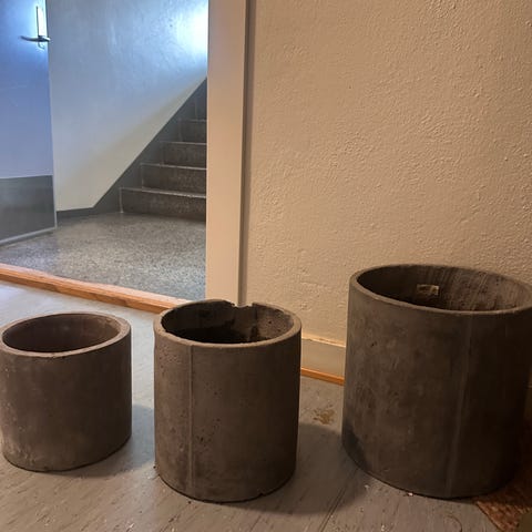 Blomsterpotter for utendørs bruk i grå betong. Ulike former og størrelser, både firkantede og runde modeller. Egnet til planter og blomster på terrasse, veranda eller i hage. Solid materiale som tåler utendørsklima og gir et nøytralt, moderne uttrykk.