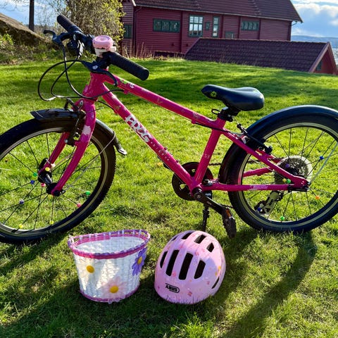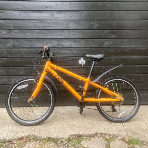 Frog 55 barnesykkel med 20" hjul i lilla farge. Sykkelen har lett ramme tilpasset barn, rette styre og sete med justerbar setepinne. Utstyrt med felgbremser foran og bak, skjermer og bagasjebrett. Egnet som hverdagssykkel for barn som trenger en sykkel med 20-tommers hjulstørrelse.