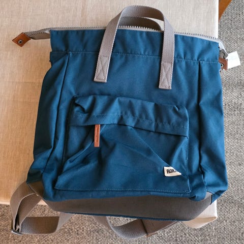 Osprey ryggsekk i stoff for unisex. Sekken har grønn ytterfarge med lyse stropper og bærehåndtak. Den har polstrede skulderstropper og ryggpanel for økt bærekomfort. Hovedrommet åpnes fra toppen og har innvendige lommer, blant annet egen polstret lomme som kan brukes til nettbrett eller liten PC, samt mindre glidelåslomme til småting. Egner seg til hverdagsbruk, skole, jobb eller korte turer.