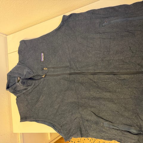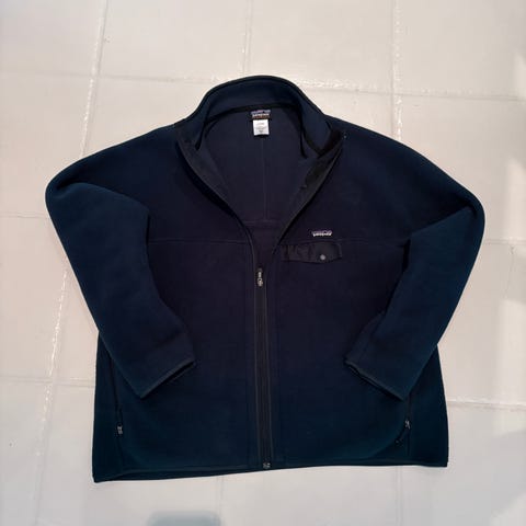 Patagonia fleecejakke for herre i størrelse XXL. Jakken er grønn og laget i fleece-materiale. Den har hel glidelås foran, høy krage og glidelåslommer i siden. Egnet som mellomlag eller ytterlag i mildere vær, til hverdagsbruk og friluftsaktiviteter.