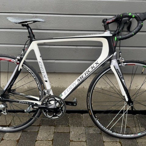 Full service med bytte av slitedeler. Splitter ny kassett, kjede, kranklager, styrelager, og bremseklosser. Hjulene er servet, rettet, og har fått pent brukte kvalitetsdekk (continental gp 4000 25mm).