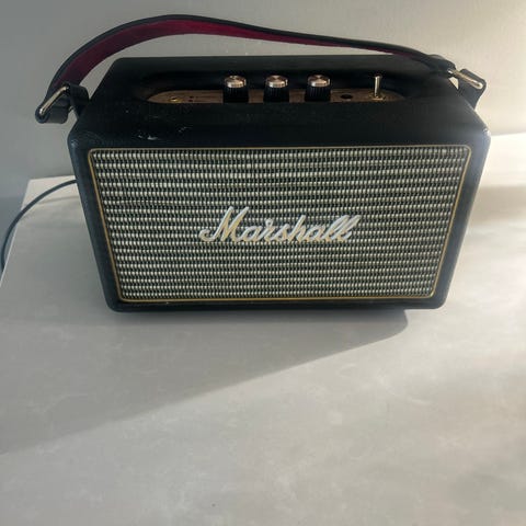 Selger min utrolig gode Marshall høytaller etter litt over ett års bruk. Den ble kjøpt sent 2024 og har blitt forsiktig brukt og tatt godt vare på siden da. Jeg har aldri hatt problemer med den, og fra min erfaring vil jeg si at dette er den beste høytalleren du kan få innen den prisklassen. Den har utrolig god bass og kan også spille veldig høy musikk i flott kvalitet. Grunnen til at jeg selger den er fordi jeg ikke bruker den så mye lengre.
