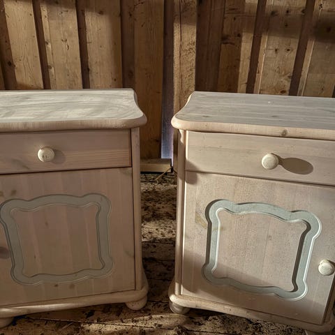 Det ene nattbordet har noen bruksmerker, men begge er i god stand
