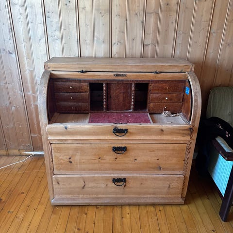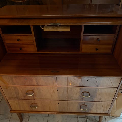 Pen antikk skatoll. Noen knotter er knekt på skuffe seksjonene inne i skatollet, men den er ellers i fin stand og kan lett repareres