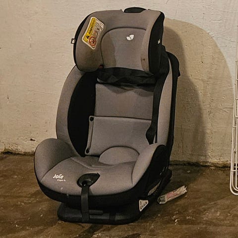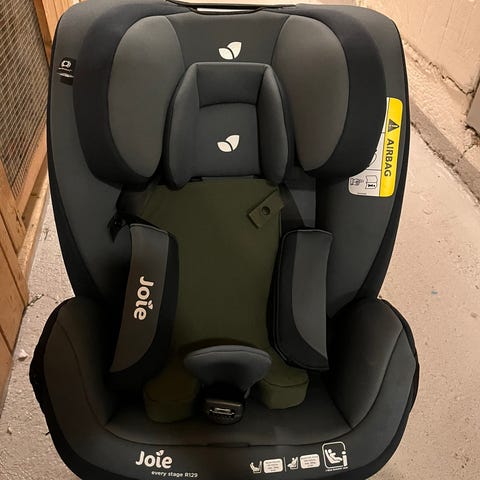 Bakovervendt bilstol fra Joie som festes med Isofix.