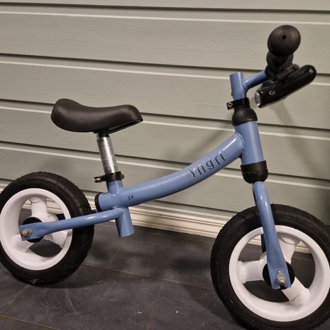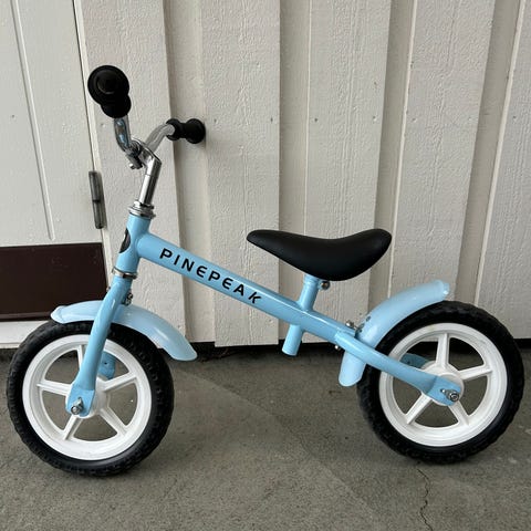Pinepeak balansesykkel med 12" hjul i blå farge. Sykkelen har lav innstegshøyde, justerbart sete og styre med gripevennlige håndtak. Egnet som første sykkel for barn som skal øve på balanse og koordinasjon før overgang til pedalsykkel.