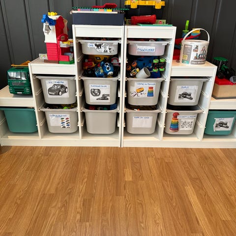 Selger denne pent brukte oppbevaringshyllen fra IKEA. Pent brukt. Selges med boksene som vist på bildet.