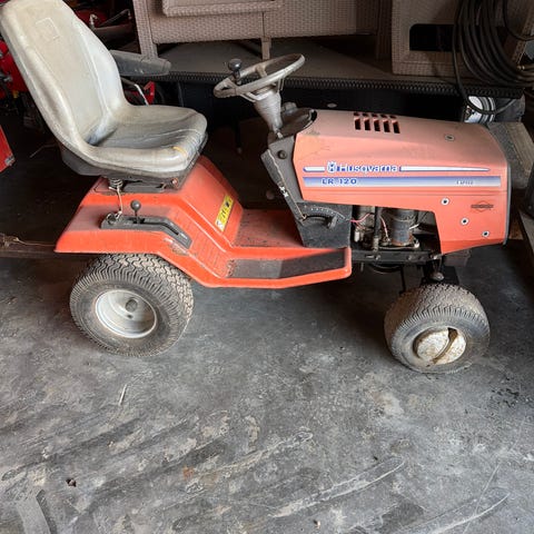 Modellen er en sitteklipper/gressklippertraktor beregnet for klipping av plen på større områder. Maskinen har førersete, rattstyring og fire hjul. Typelappen viser modellbetegnelsen LR120.