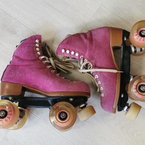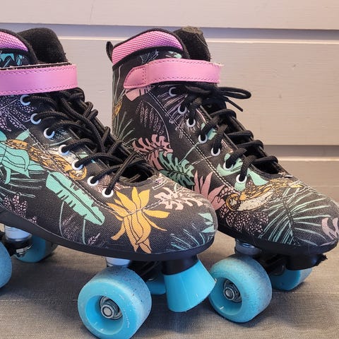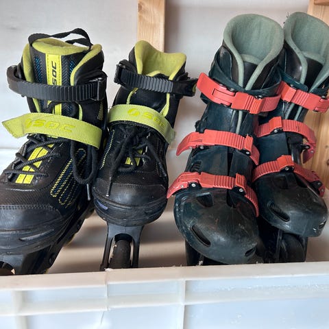 Brukte rulleskøyter (Quads) selges. Noe slitasje på yttersiden av begge skøytene, på høyre tupp og på begge bremsene (mest på den høyre)- Se bilder. Kan fortsatt fint brukes. Str 38.
