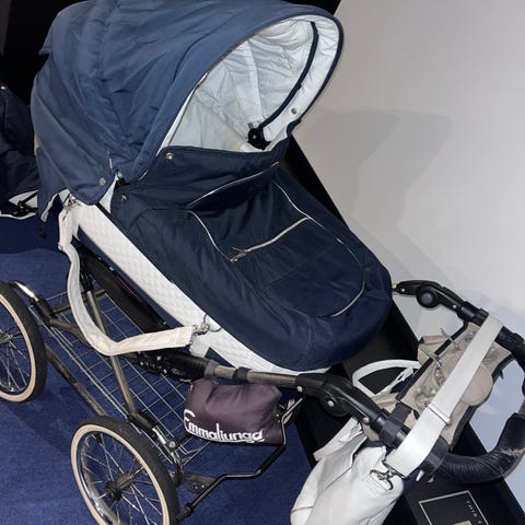 Emmaljunga barnevogn i klassisk utførelse fra 2014. Vognen har stor liggedel med avtagbar madrass og kalesje. Understellet har fire store hjul og varekurv under vognen. Håndtaket er polstret og formet for godt grep. Passer til bruk fra nyfødt og gjennom spedbarnsperioden, og er egnet til trilleturer på ulike underlag.