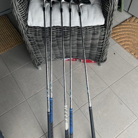 Selger et jernsett med 7 køller av ⁸typen Taylormade M2 Tour 5-A (gapwedge) som er pent brukt og har mye golf igjen!
