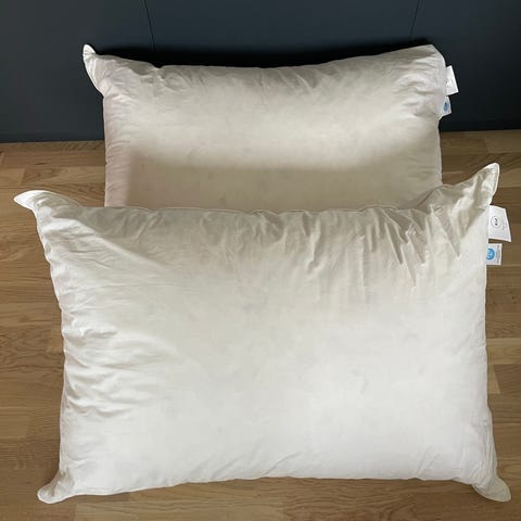 H&M Home pute 40x60 cm i hvit farge. Rektangulær hodepute med fyll og trekk i tekstil, egnet til bruk i seng eller som støttepute i sofa eller stol. Puten har merkelapp med vaskeanvisning og kan brukes med standard putevar tilpasset størrelsen 40x60 cm.