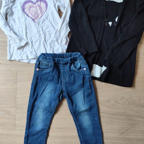 Den sorte slengbukser fra H&M i 116, og den er nesten like lang som jeansen fra Billieblush.
