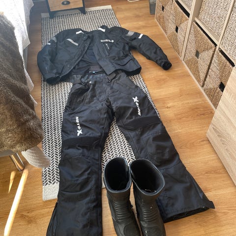 Buksen er i str L og jakken i str S, men jeg mener buksen er litt liten i størrelsen. Både jakke og bukse er i god stand og er lite brukt.