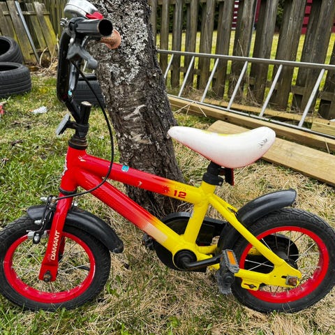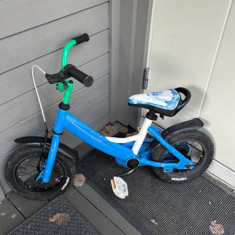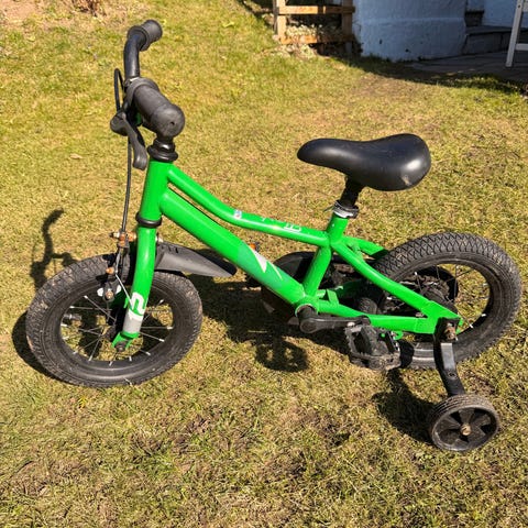 Sykkelen har 12-tommers hjul som passer for mindre barn som skal lære å sykle. Den leveres med støttehjul og skjermer foran og bak. Sete og holker er tilpasset barn, og sykkelen har pedalbrems bak samt håndbrems.