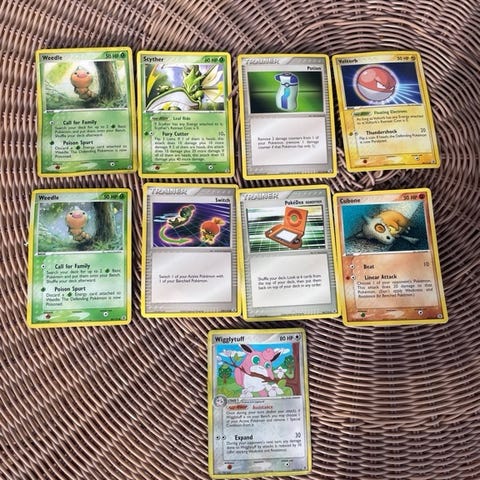 Selger en samling originale Pokémon-kort fra 1995–2000.