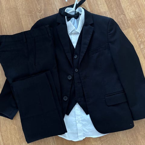 dress til gutt str 128, stor i størrelse. Selges med vest, skjorte og slips.