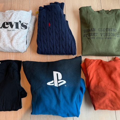 Stor pakke med hoodies og gensere fra kjente merker.