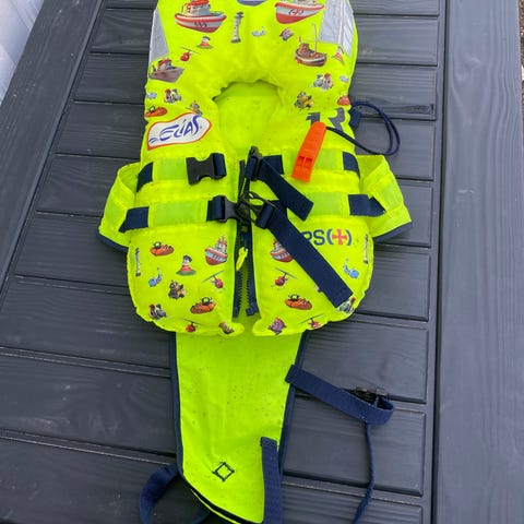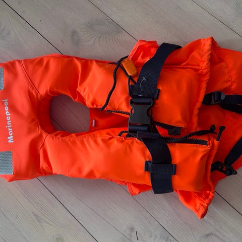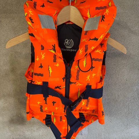 Mälaren redningsvest i oransje farge. Vesten er merket for ca. 10-20kg kroppsvekt. Den har stor krage for støtte til hodet i vannet og justerbar midjereim med plastspenne. Refleksfelt på kragen for bedre synlighet.