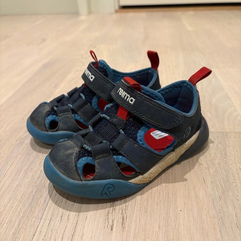 Reima sandaler i størrelse 25 med justerbare borrelåser over vristen for god passform. Overdel materiale med pustende meshpartier og lukket tå. Yttersåle i gummi med mønster for bedre grep. Innersåler kan tas ut.