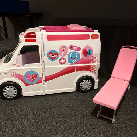 Selger en Barbie ambulanse med tilhørende utstyr. Perfekt for barn som liker rollelek og redningshistorier. Settet er i god stand og klart til bruk.